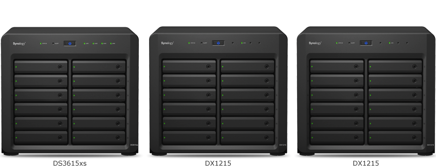 擁有 12 個(gè)硬盤托盤的 DS3615xs,通過連接至兩臺(tái) DX1215 擴(kuò)充設(shè)備2,總?cè)萘靠蓴U(kuò)充至最多 216TB3,并能快速將單一存儲(chǔ)空間的容量實(shí)時(shí)擴(kuò)充至 108TB。當(dāng)存儲(chǔ)空間接近上限時(shí),DS3615xs 可輕松擴(kuò)充至多達(dá) 36 顆一般硬盤或 SSD 硬盤,提供靈活擴(kuò)充的容量及均衡的效能,能符合不同應(yīng)用程序及程序的需求。