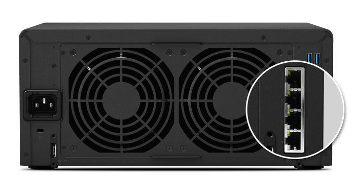 DS1815+ 內(nèi)建支持故障移轉(zhuǎn)及 Link Aggregation 的四網(wǎng)絡(luò)埠,在其中一個(gè)網(wǎng)絡(luò)埠故障的狀況下,仍可讓聯(lián)機(jī)繼續(xù),幫助降低服務(wù)中斷的可能性以及因停機(jī)所造成的昂貴成本。此外,Link Aggregation 充分發(fā)揮四網(wǎng)絡(luò)埠的優(yōu)點(diǎn),可提升連接速度,突破單一網(wǎng)絡(luò)線或網(wǎng)絡(luò)埠的速限。