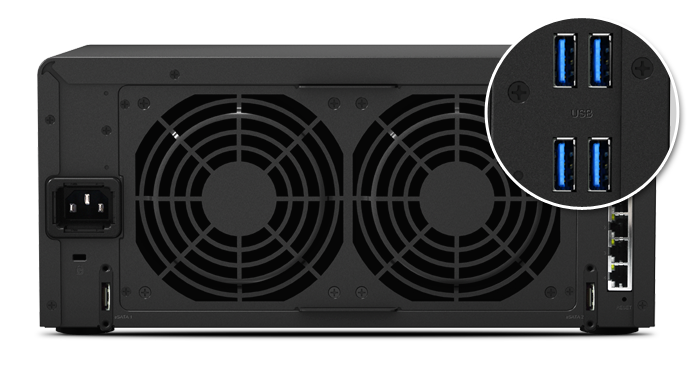 DS1815+ 配備 USB 3.0 和 eSATA 埠,可與外部存儲(chǔ)設(shè)備連接,同時(shí)提供高速、有效的文件傳輸。USB 3.0 埠能提供高達(dá) 5Gbps 的傳輸速度 (比 USB 2.0 快 10 倍),不僅節(jié)省外接硬盤(pán)的數(shù)據(jù)傳輸時(shí)間,也可降低耗電量。