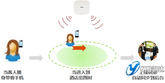 銳捷認(rèn)證系統(tǒng)提供標(biāo)準(zhǔn)的接口,可以將客人的上線信息自動(dòng)同步到酒店的后臺(tái),后臺(tái)可通知門童、前臺(tái)、大堂經(jīng)理,某某客人來(lái)了。