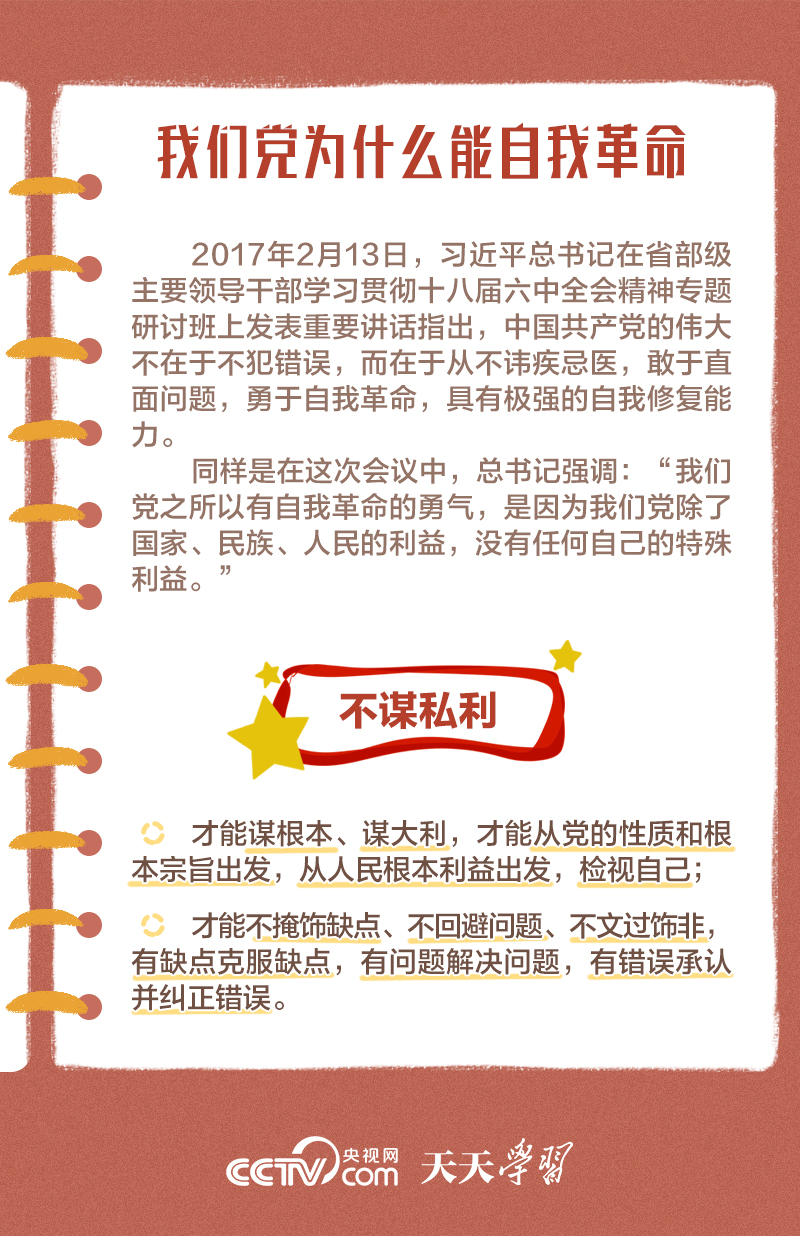 勇于自我革命是我們黨最鮮明的品格和最大的優(yōu)勢,總書記多次對推進黨的自我革命作出重要部署。此次會議上,總書記深刻闡述了黨的自我革命的重要思想,明確提出需要把握好九個問題,并對持續(xù)發(fā)力、縱深推進反腐敗斗爭作出戰(zhàn)略部署。央視網(wǎng)《天天學(xué)習(xí)》與您一起學(xué)習(xí)。