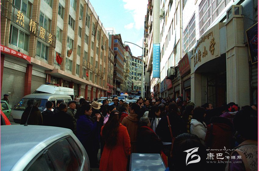 11月10日11時50分,記者趕到康定東大街小學(xué)門口,正是中午放學(xué)時間,一陣下課鈴聲響過之后,成百上千的學(xué)生魚貫而出,與等候在校門口的家長匯合。學(xué)生、家長的喧鬧聲和汽車?yán)嚷晠R集到一起,現(xiàn)場十分嘈雜。記者還沒走到校門口,就不得不走下人行道,在馬路上見縫插針地行走。因?yàn)闆]有專門的家屬等候區(qū)域,家長們已經(jīng)把公路占據(jù)了一大半,車輛只得緩慢行駛。記者發(fā)現(xiàn),由于路面本來就十分狹窄,幾乎沒有人行道,車輛和行人不分,交通狀況十分擁擠。